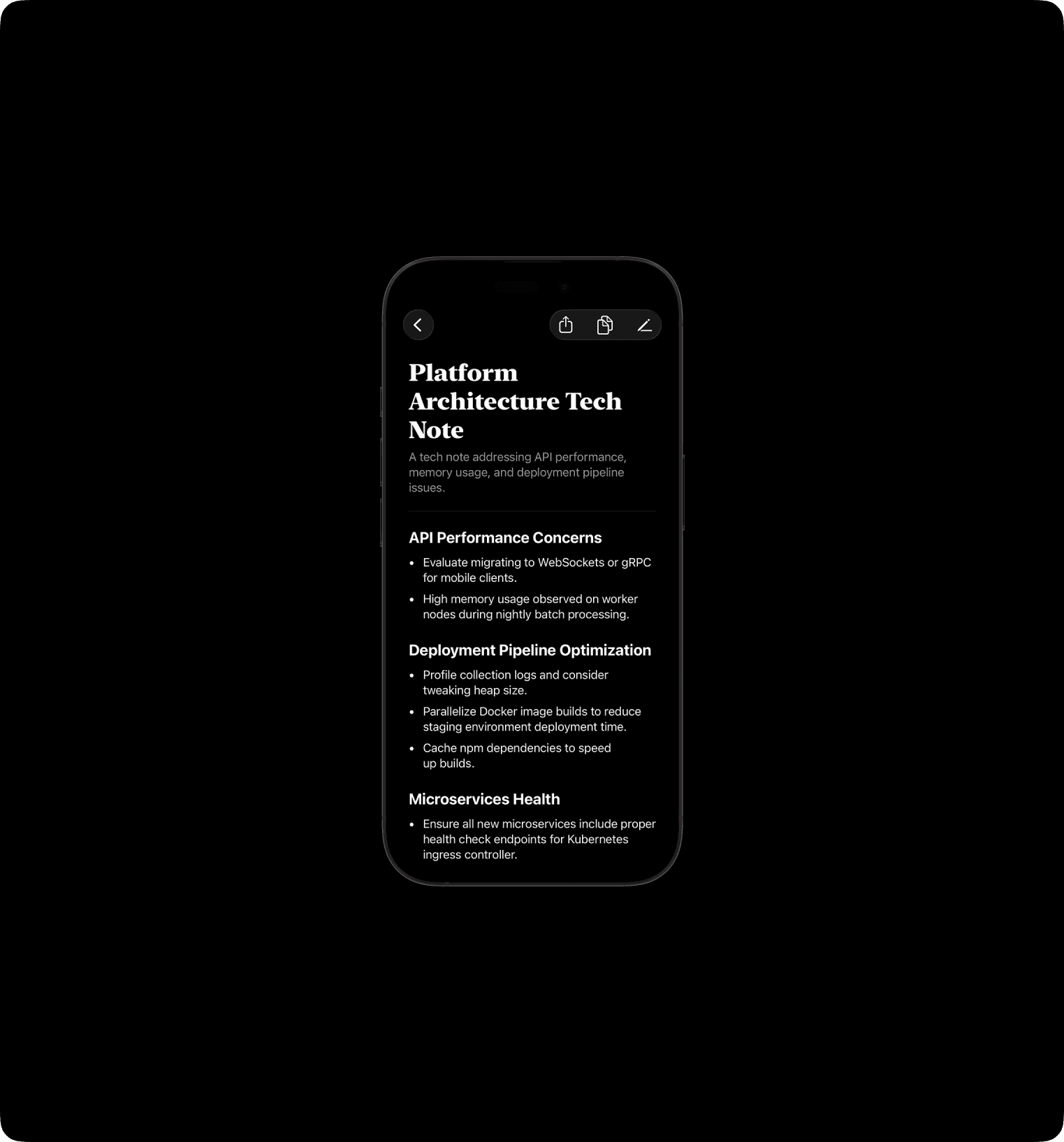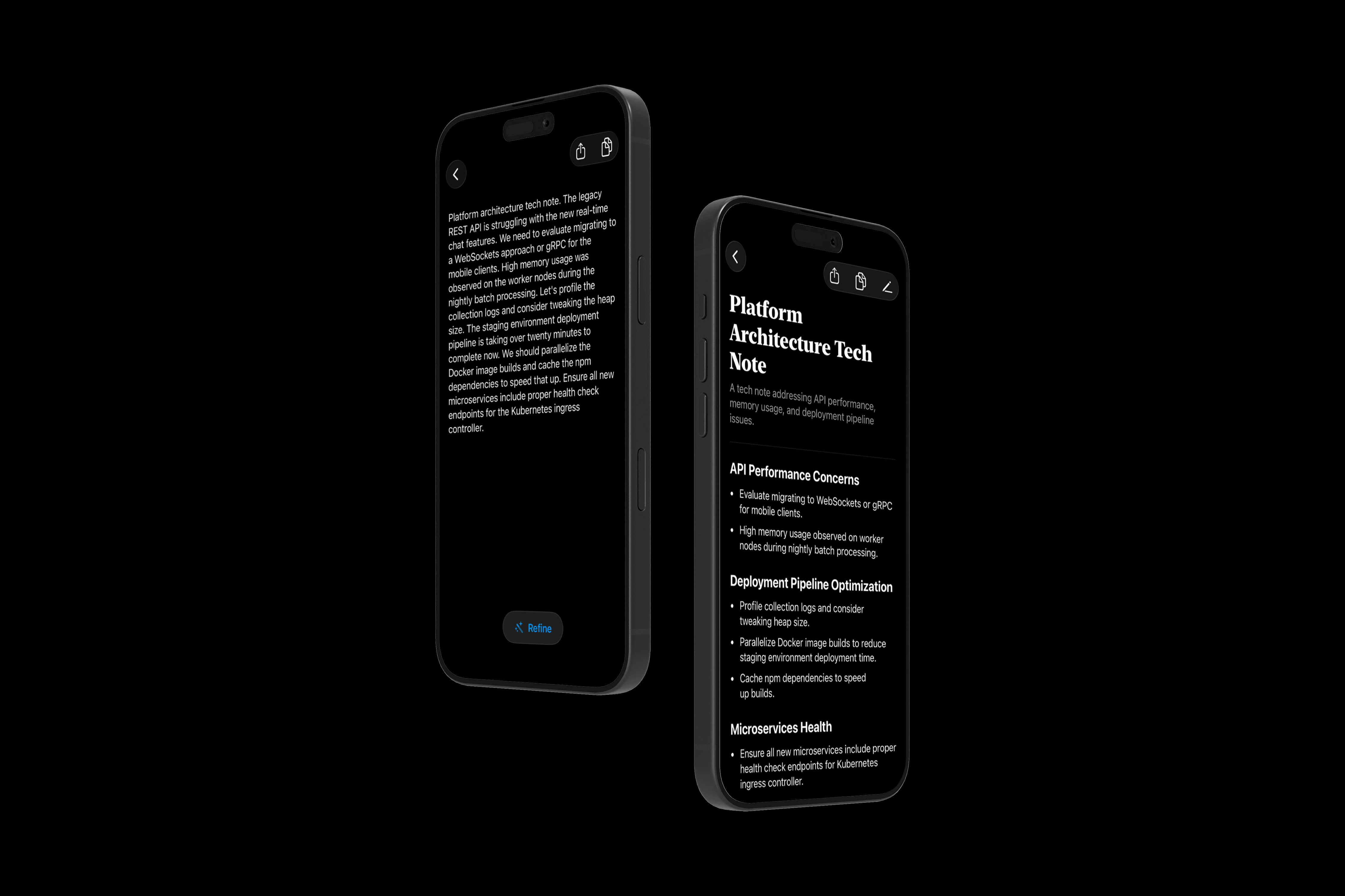 Native, streamlined iOS experience. Tap the mic and capture ideas instantly; spend less time typing and more time thinking.